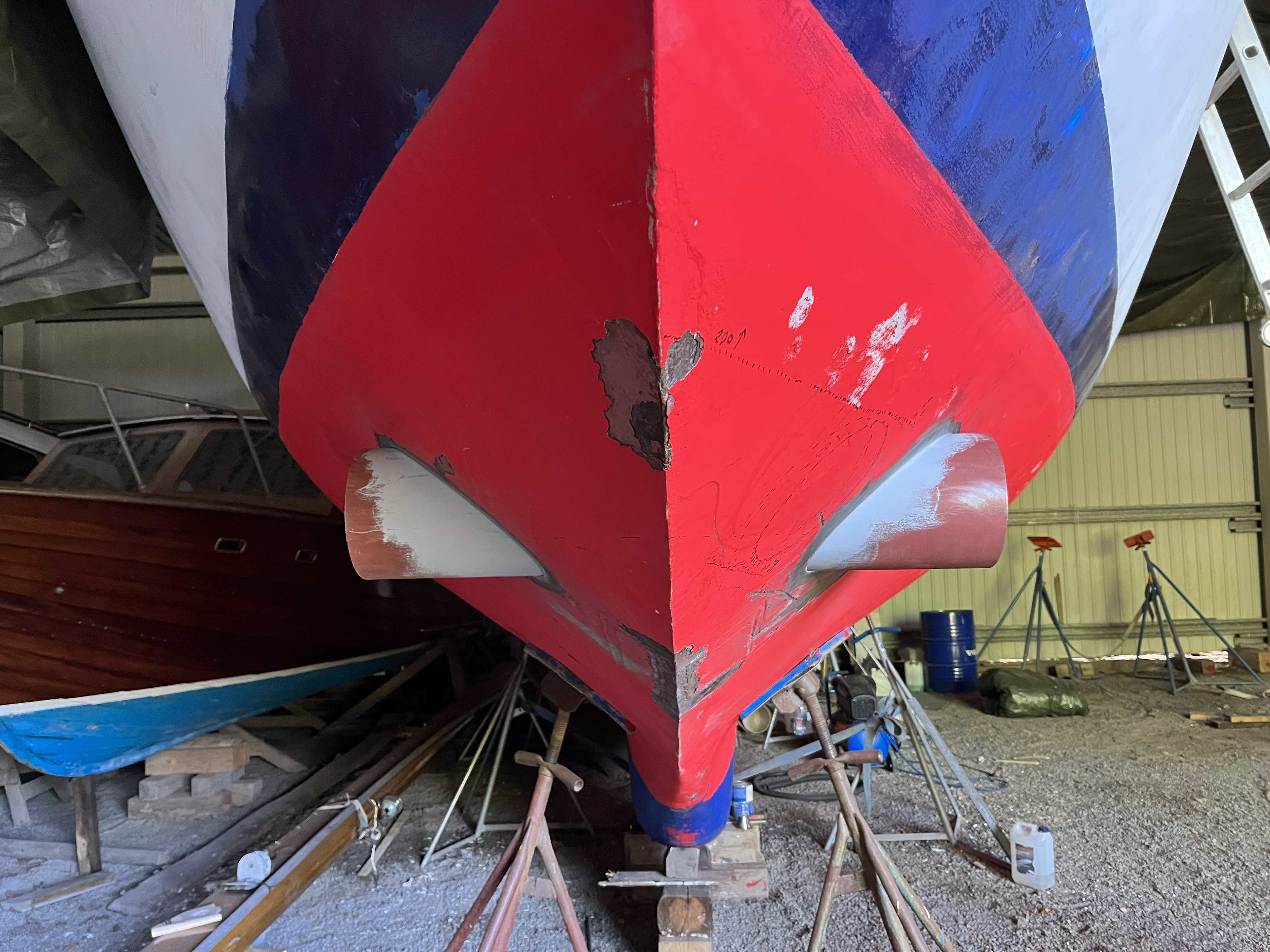Ariadne on 12,55m pitkä pitkäkölinen vene ja sen kääntäminen ahtaassa satama-altaassa vaatii hermoja ja kokemuksen tuomaa taitoa, puhumattakaan siitä mitä sen hallittu peruuttaminen vaatii. Olen manöövereihin jo tottunut, tosin alkukesinä piti useaan otteeseen satamaan tultaessa jättää erinomainen laituripaikka pois laskuista sillä se oli joko liian ahtaassa paikassa, tuuli oli oikukas tai vastaantuleva neuvoja lateleva veneilijä pilasi lähestymisen. Mielessä pyöri useita vuosia, että keulapotkuri saattaisi auttaa. Päätös keulapotkurin hankkimisesta syntyi lopulta vuonna 2020. Vaikein vaihe oli paikan valinta ja putken reikien tekeminen, suoria pintoja kun ei ollut missään mittauksia helpottamassa.